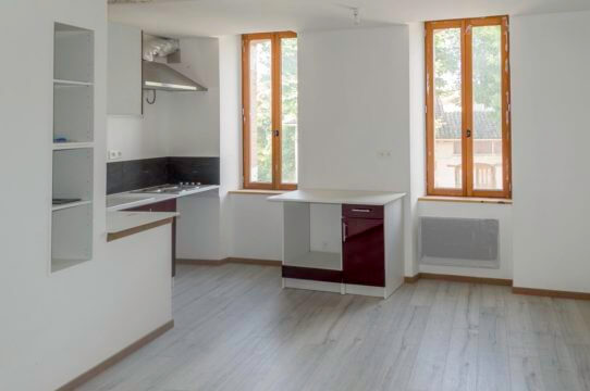 A 10 minutes de l’Isle Jourdain bel immeuble en pierres d’une superficie totale de 161 m2 et divisé en 3 appartements de respectivement 45 m2 pour le T2 loué 400 € par mois, 53 m2 pour le T3 du 1er et 63 m2 pour celui du rez de chaussée qui est à terminer et pourrait convenir pour une profession libérale.