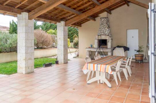 Sur le terrain de 8400 m2 une grande terrasse équipée d’un BBQ qui donne sur une très belle piscine.