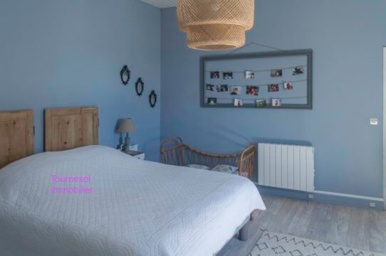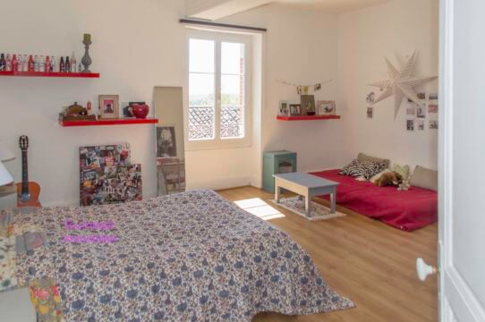 4 belles chambres à l’étage, 1 immense salle de bains avec baignoire, douche à l’italienne et toilettes séparées ainsi qu’une bibliothèque.