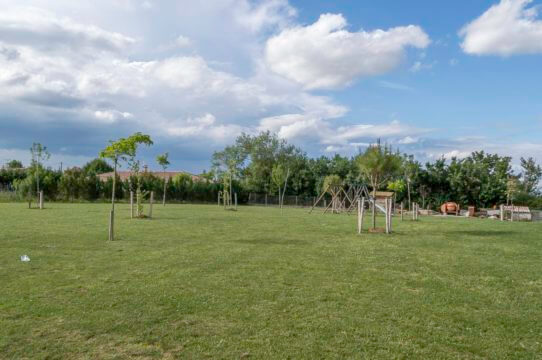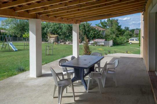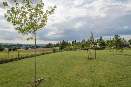 Sur le terrain de 5800 m2 deux grandes terrasses et une piscine hors sol.