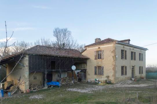 Proche de Simorre à la campagne et avec une jolie vue, ferme et ses dépendances à finir de rénover. L’entrée dessert un salon avec cheminée, une cuisine, une salle de bains avec toilettes, un petit bureau. 2 chambres à l’étage. Grenier aménageable.