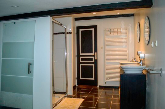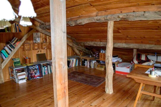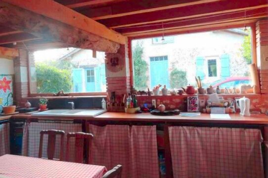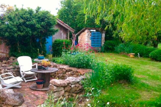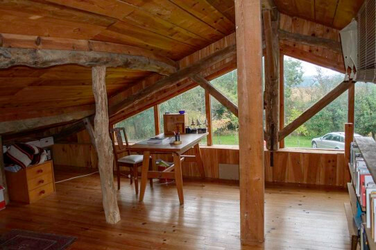 La seconde maison a été aménagée dans un esprit « loft » avec de grands volumes ouverts, grande pièce de vie au rez-de-chaussée avec une cuisine Américaine chauffée par un poêle à bois, une salle de bains et des toilettes et, à l’étage, deux chambres, un dressing et un bureau très lumineux. Cette habitation dispose également d’une terrasse couverte.