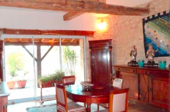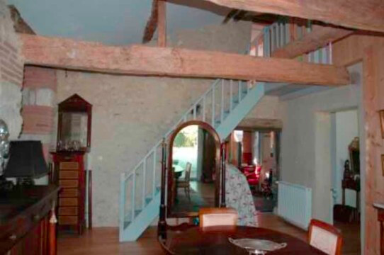 Bel ensemble en pierres à deux pas de Cologne sur un joli terrain de 3500m2 avec un puits. La maison principale comprend une grande cuisine avec les éléments anciens conservés, un double séjour, 3 chambres, 2 salles d’eau et 2 toilettes ainsi qu’une grande terrasse couverte.