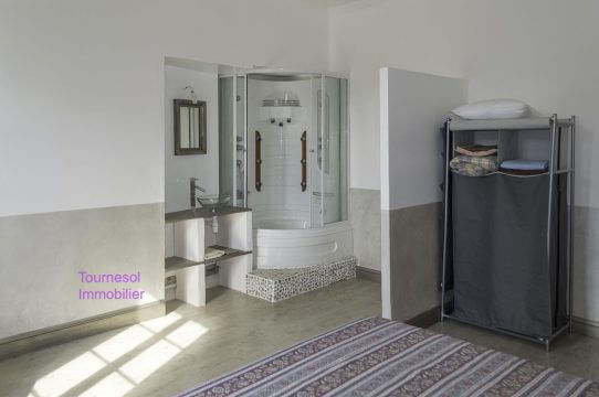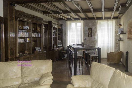 Gasconne de 4 chambres dans un joli village proche de Mauvezin. Un couloir dessert un double séjour avec cheminée, une cuisine, une chambre, une cuisine, des toilettes pour le rez de chaussée.
