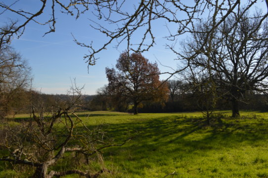 Bien de charme au calme avec une vue dégagée à quelques pas d’un village avec école et commerces de proximité. De beaux arbres centenaires.