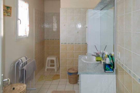 De belles prestations pour cette jolie villa très bien entretenue. Un bel espace à vivre au rez de chaussée avec cheminée, une vaste cuisine équipée et toutes deux donnant sur la terrasse et la piscine orientées est/ouest. 1 chambre avec dressing, une salle de bains avec baignoire d’angle et douche, des toilettes séparées, 1 cellier/buanderie.