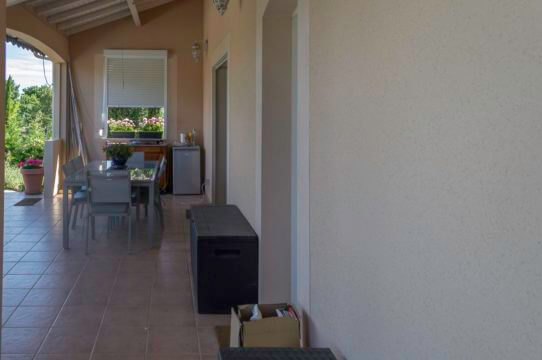 Sur le terrain de 2000 m2 une belle piscine au sel de 10 x 5 m que surplombent deux très agréables terrasses.