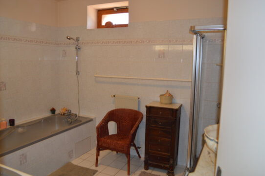 Une spacieuse mezzanine à l’étage vous conduit à 2 grandes chambres , 1 salle de bains avec baignoire et douche ainsi qu’à des toilettes séparées. Un espace important a été aménagé en dortoir/salle de jeux pour les enfants.