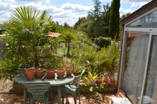Joli jardin plein sud avec abri en dur.