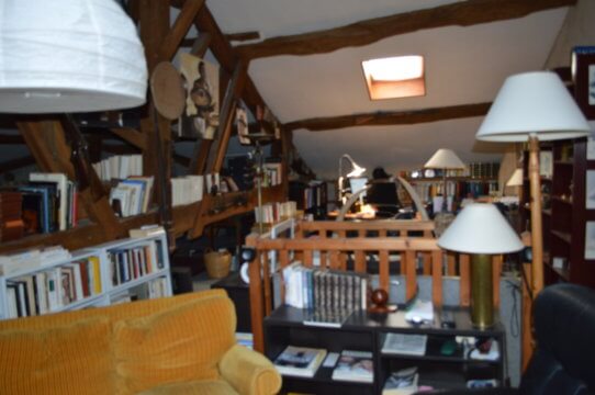 Le grenier de 90 m2 a été aménagé en partie : bureau, bibliothèque et espace nuit.