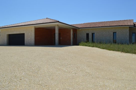Vaste villa d’architecte de plain pied de standing sur 1,2 ha avec sous-sol/garage dont la rénovation reste à terminer. Beaux matériaux de qualité utilisés.