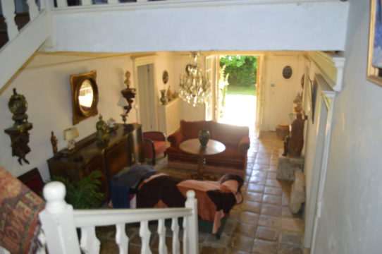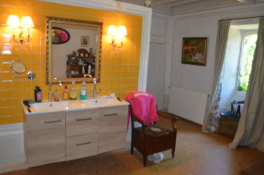 Dans la maison principale un grand hall vous conduit à un salon avec cheminées, une salle à manger avec cheminée également, une bibliothèque (ou chambre), une cuisine, une autre grande pièce, une chaufferie, une salle d’eau à refaire et des toilettes. Une grande terrasse carrelée a été aménagée afin de vous permettre de profiter des longues soirées d’été.