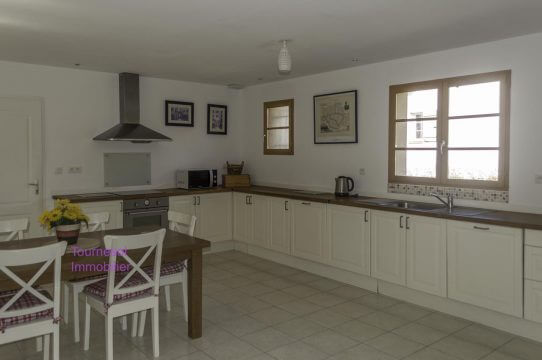 In the center of the prety village of Mauvezin with all amenities : shops, schools, doctors, pharmacy, cars service,.. ant at walking distance from the center lovely ground floor cottage. Family room with an American fitted kitchen and French doors leading onto the terrace and the land facing the Pyrénées mountains, 3 bedrooms with cupboards, bathroom with toilets + separate toilets with a wash basin, garage. Airconditioning.